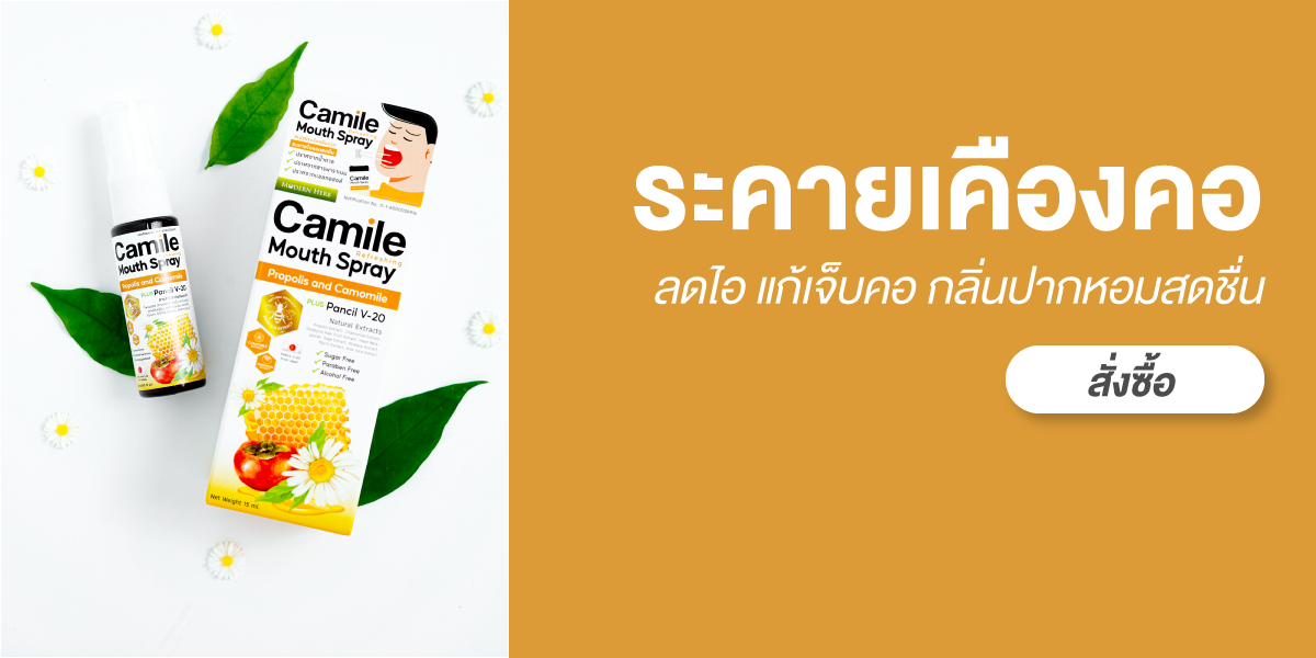 คามายล์ เมาท์ สเปรย์ สำหรับช่องปากและคอ พ่นชุ่มคอ บรรเทาเจ็บคอ